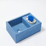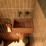 The Cloakroom Basin can sit countertop or can be wall hung with a separately purchased steel bracket. The basin can be hung with the ledge to the left or right.