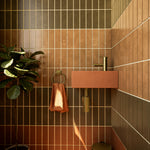 Sinks shown are in shades WKD, Jaffa and a Powder/Truffle Shuffle mix.