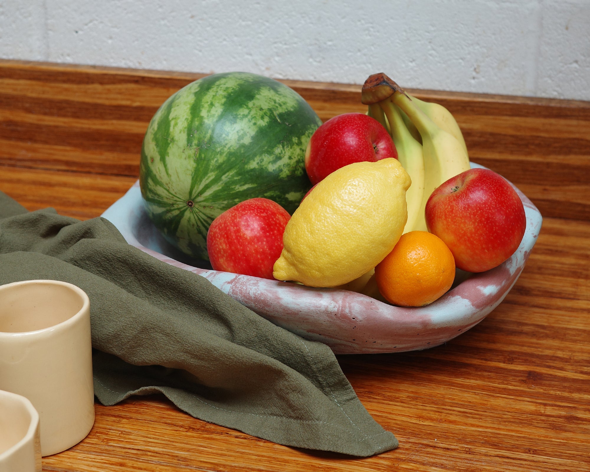 Chunky and shapely, this free flowing concrete bowl makes the perfect fruit bowl or bold centrepiece.