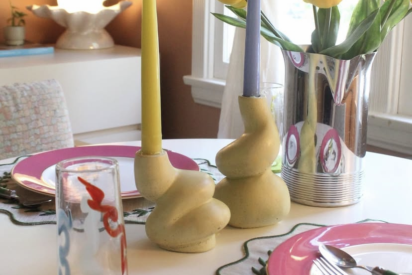 A pair of Little and Big Glob candle holders, creating a cuddle. Display your candle holders together or separately to bring your mantlepiece or dinner table to life.
